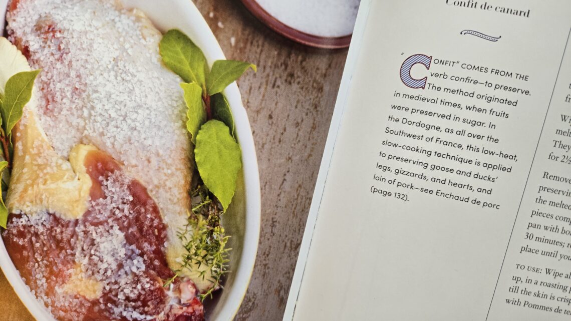 On an evening in California on a Thanksgiving visit to our son, we leafed through vintage cookbooks that he had picked up at the local library. It was fun to banter back and forth on the ideas, ingredients and methods from the past and make a wish list of things to cook. I particularly enjoyed French Country Kitchen by James Villas, a 1992 edition subtitled The Undiscovered Glories of French Regional Cuisine that he included in a box of wrapped Christmas gifts sent to put under our tree. Unwrapped and marked “Not a Christmas present” he just stuck it in to pass along.