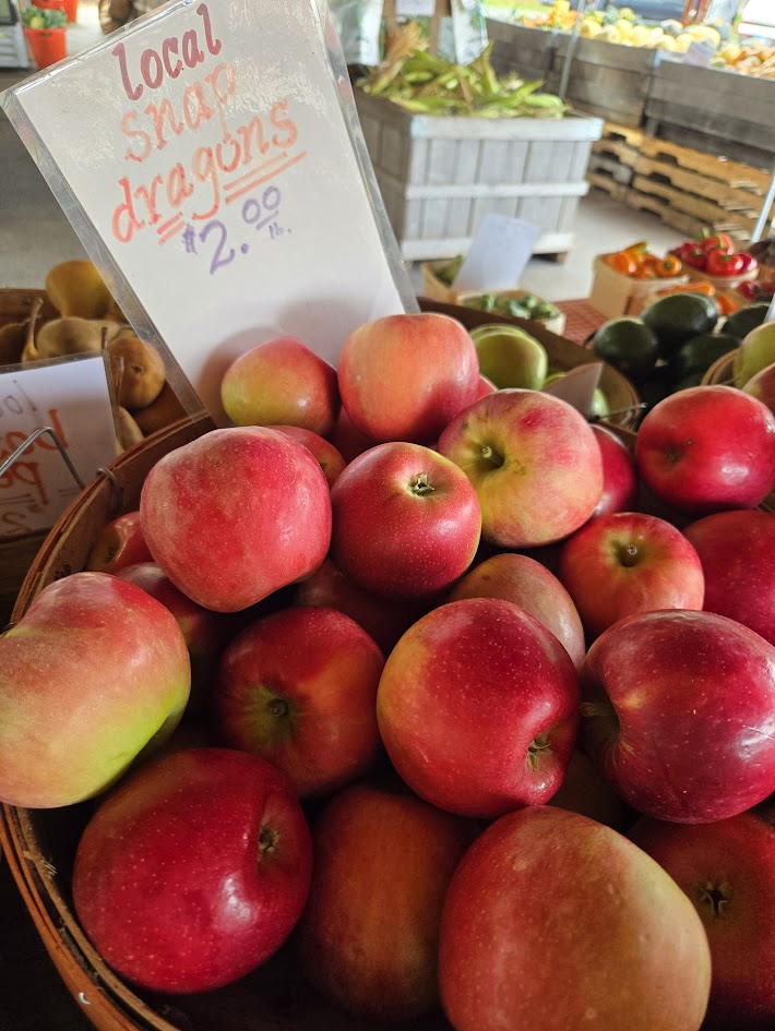 Jim Story, head of the family at Story Farms in Catskill, NY, had trouble choosing when I asked for his favorite apple. He finally recommended a locally-grown SnapDragon. Medium-sized with cheerful red cheeks, the SnapDragons were crisp and snappy with a mild appley flavor and long finish.