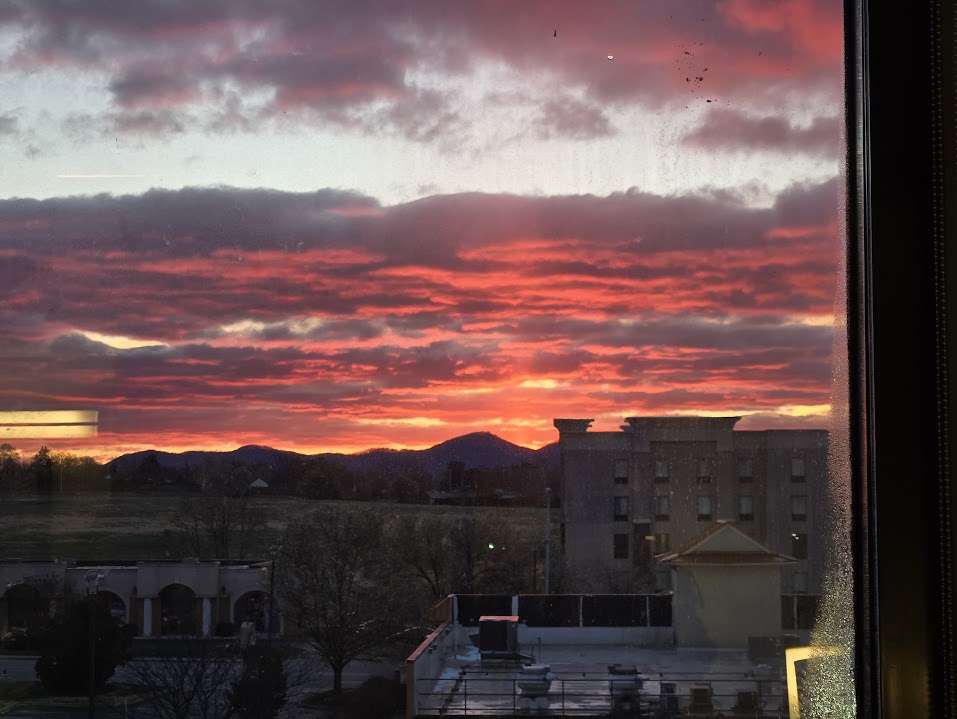 School and business closings crawling across the bottom of the hotel-room TV in Roanoke, VA were a rude shock. How could this be? What’s up with the weather? A cold front pushing high winds, heavy rains, intense thunderstorms and possible tornados was headed our way on day two. On the back side, temperatures were forecast to be in the 20s.